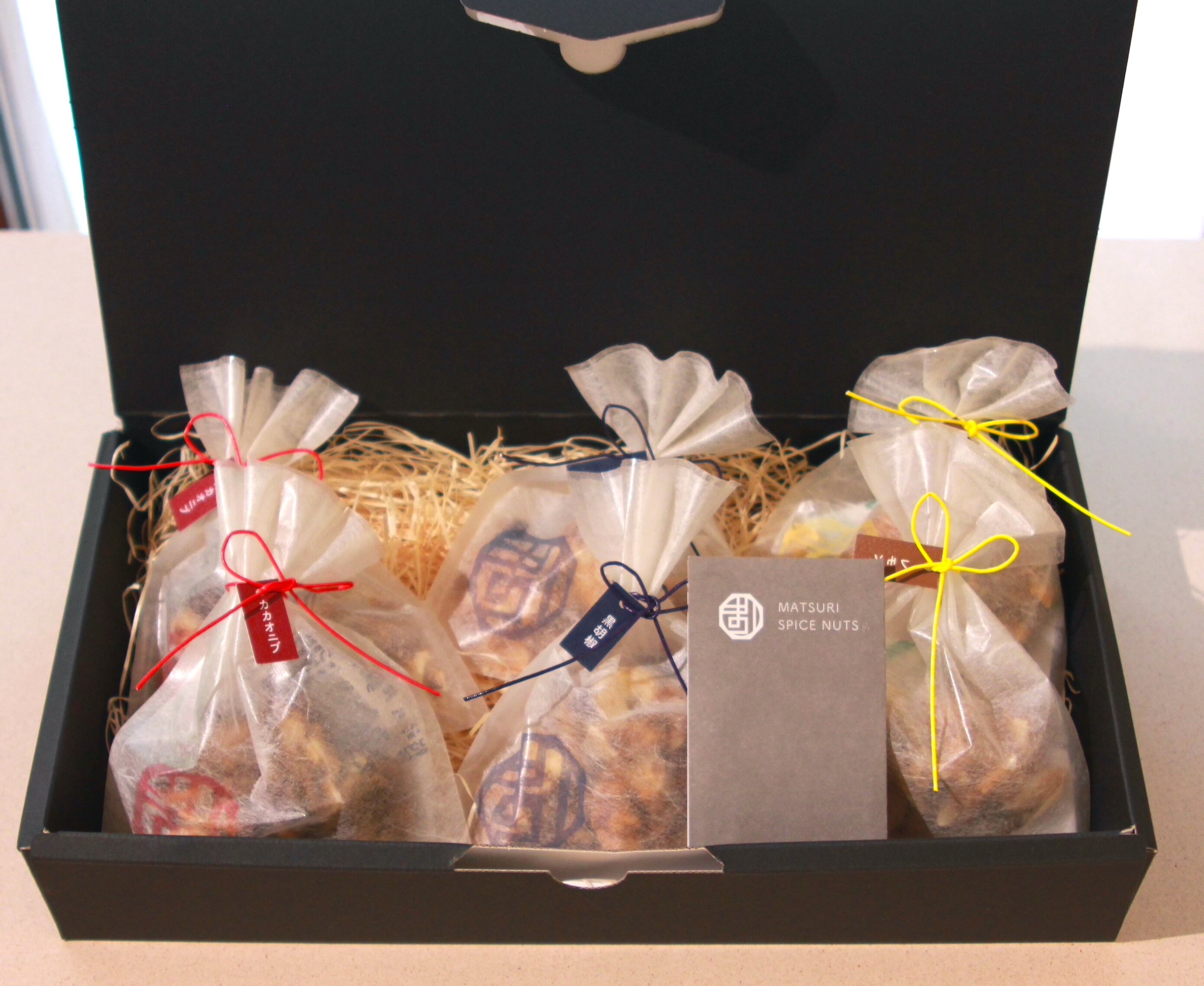 MATSURI SPICE NUTS【紺】【赤】【黄】30g入りが2個ずつ入っています。